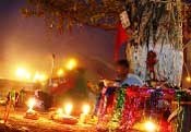 festival starts at mid-night when the white kites flying in the sky are lit with